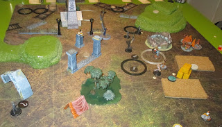 Opponent started shuffling about, slowly claiming both markers in the middle. Whenever wastrels had action points yo spare, they took small shots at Nix. And damage kept piling in, leaving me worried fur the pup's safety.Before Sidir had activated, Hamelin took his shot. He stunned Sidir and made Malifaux Child interact a scheme for Benny. Last action went to move away from easy range of Machine Gun.